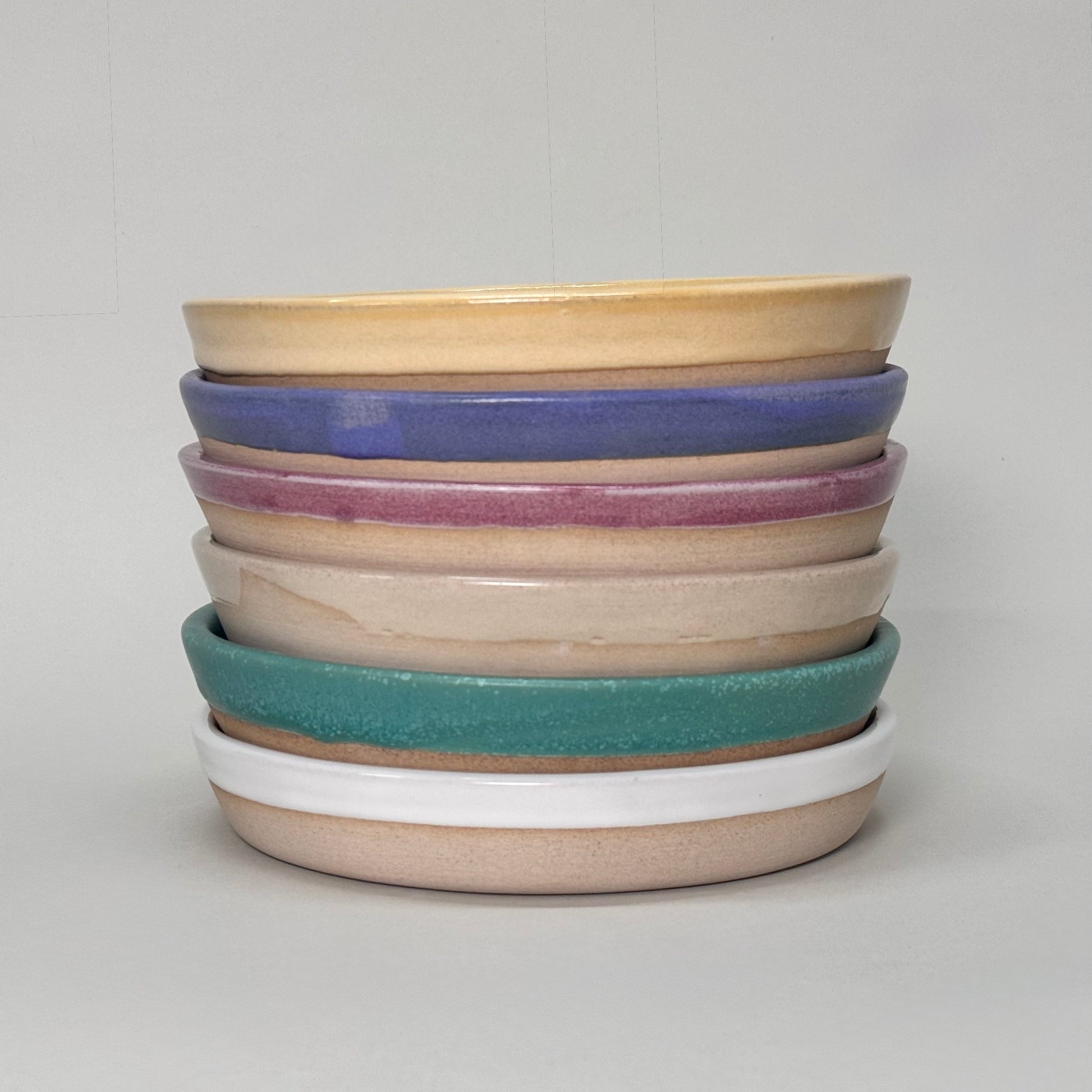 Compact and practical, these 7” ceramic side plates are perfect for bread, salad, dessert, or small servings. Their minimal, balanced form and curated glaze palette match the 9” dinner plates, creating a cohesive yet expressive table setting. Each piece is cast in stoneware and finished by hand, combining durability with quiet elegance.